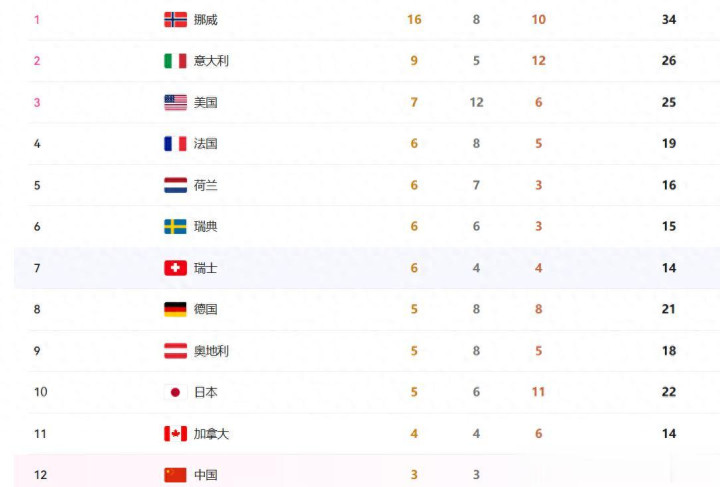 北京时间2月20日,冬奥会进入到了后半程的争夺,在前半程表现不佳的中国队迎来了爆发,我们不仅仅连续拿下金牌,而且在很多过往我们不擅长的项目上,虽然没有站上领奖台,但是连续的取得了历史性的突破,取得了冬奥会历史的最佳战绩,宁忠岩夺冠,给到了中国观众很大的惊喜,金牌榜再次大乱,中国队排名继续提升,已经成为亚洲第二,具体金牌榜如下: